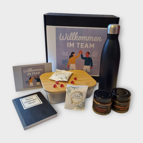Sie möchten Danke sagen und in Erinnerung bleiben. Wir gestalten Ihr Geschenk so, dass es sich anfühlt wie eine kleine Umarmung Ihrer Marke. Jede Box wird mit Ihrem Logo veredelt, mit feinen Inhalten befüllt und mit viel Sorgfalt zusammengestellt. Ob für treue Kunden, neue Mitarbeitende oder besondere Gäste – nachhaltige Materialien, kurze Wege und eine saubere Verarbeitung sind für uns selbstverständlich. Sie wählen aus, wir kümmern uns um den Rest. So wird aus einem Präsent ein echter Moment der Wertschätzung.