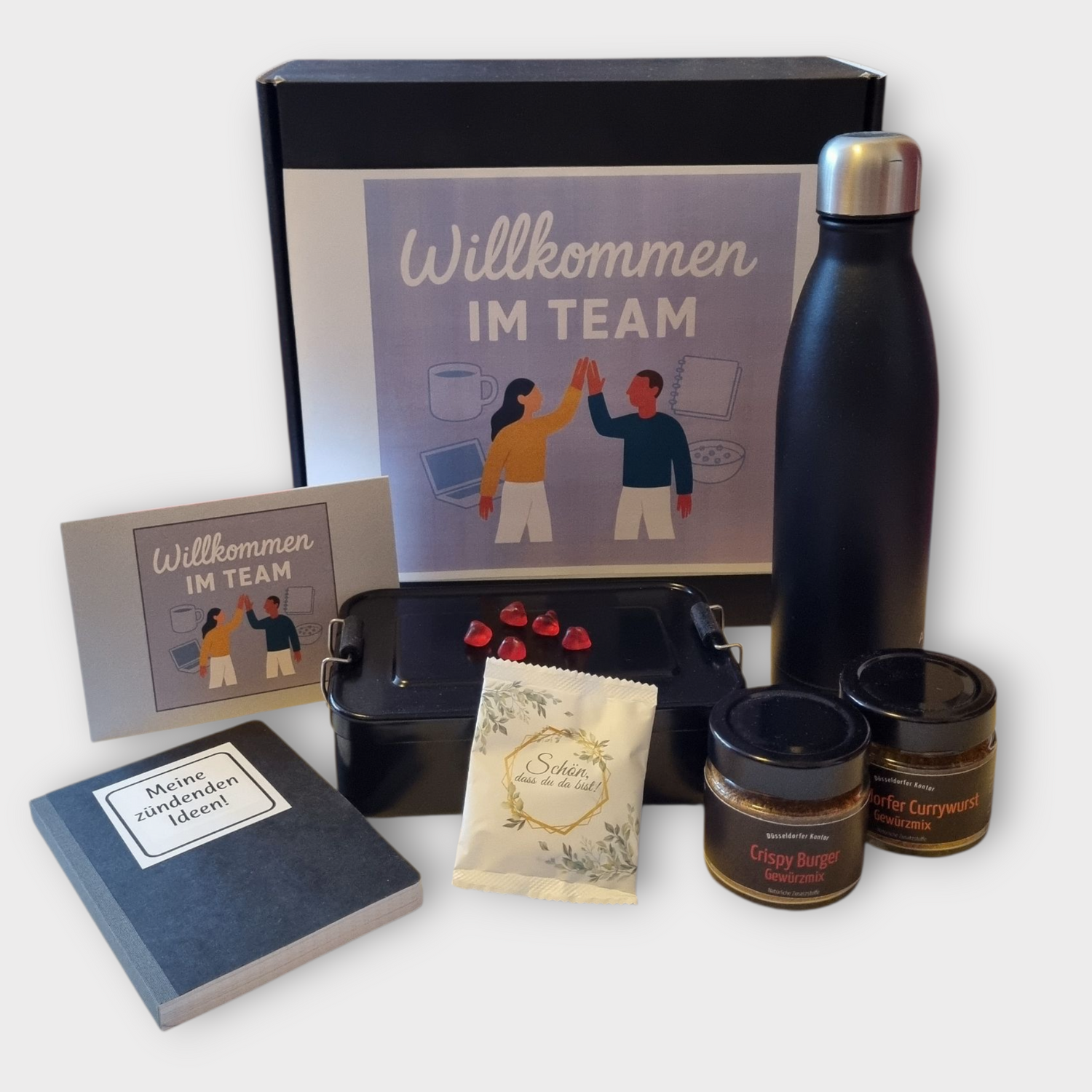 Unsere edle Geschenkbox – der „moderne Geschenkkorb“ – enthält sorgfältig kombinierte Produktsets. Immer dabei: eine kostenlose, personalisierte Grußkarte. Wenn es einfach passen muss: Sagen Sie öfter Danke.